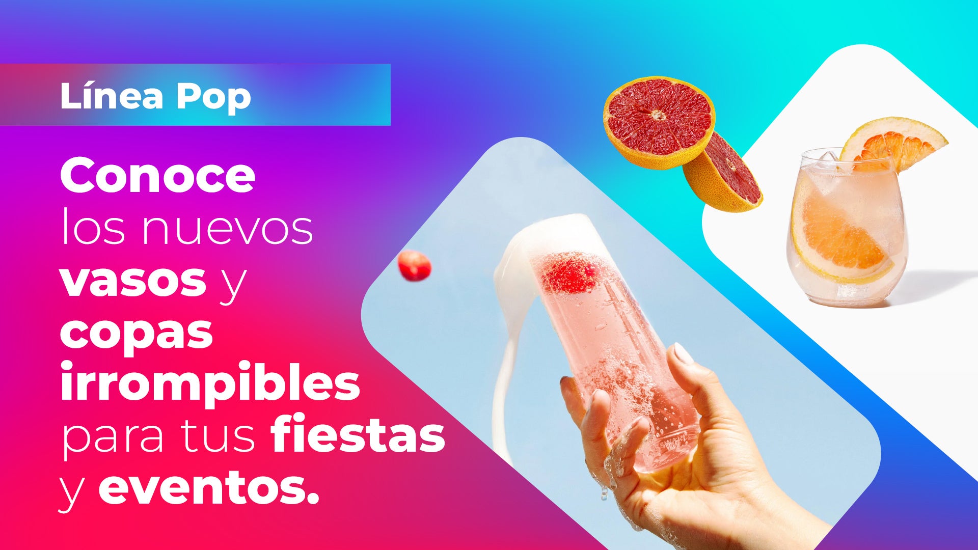 Vasos y copas premium irrompibles en PET de máxima calificación. Perfectas para tus reuniones, fiestas y eventos.